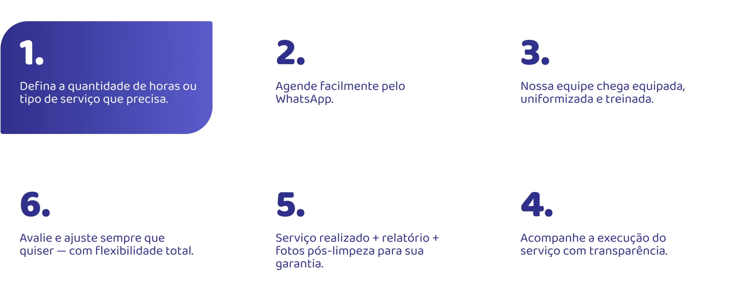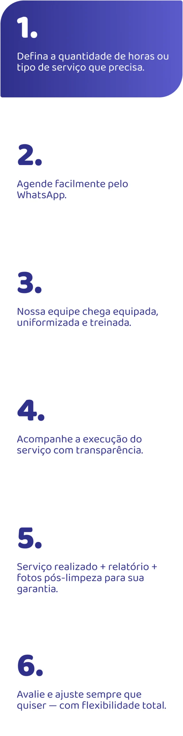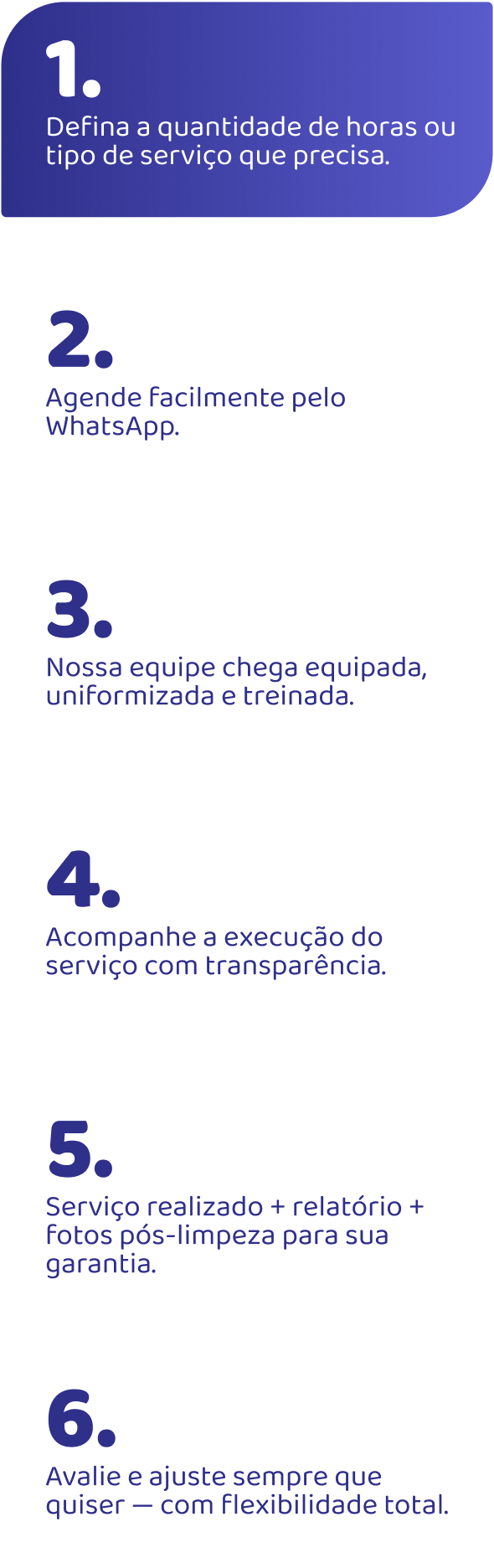 Nosso diferencial está na atenção aos detalhes e no compromisso em superar as expectativas de quem confia em nós. Mais do que uma empresa de limpeza, queremos ser parceiros na criação de ambientes mais agradáveis, organizados e acolhedores.